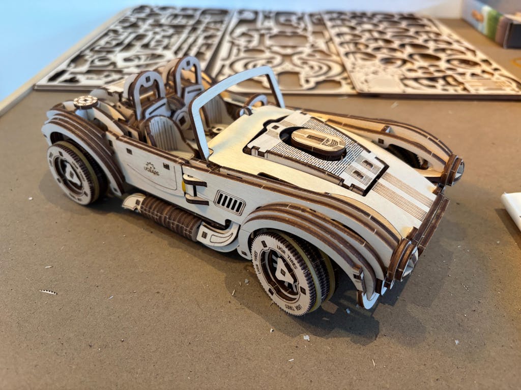 I built this model several years ago which was first experience with Ugears. It was a disaster so now that I’ve done many models I decided to try my luck again knowing the construct and need to understand directions exactly, it was a success! Had one need for glue which is well hidden and coesnt interfere with mobility of car.