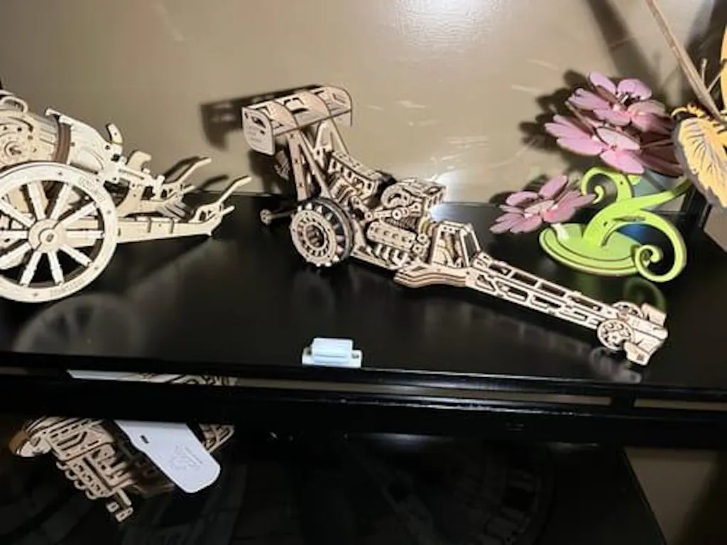 3D puzzle Ugears Top Fuel Dragster. The car travels up to 8 meters and rears up on its back tires. Moves without batteries. Assemble without glue. The perfect gift!
