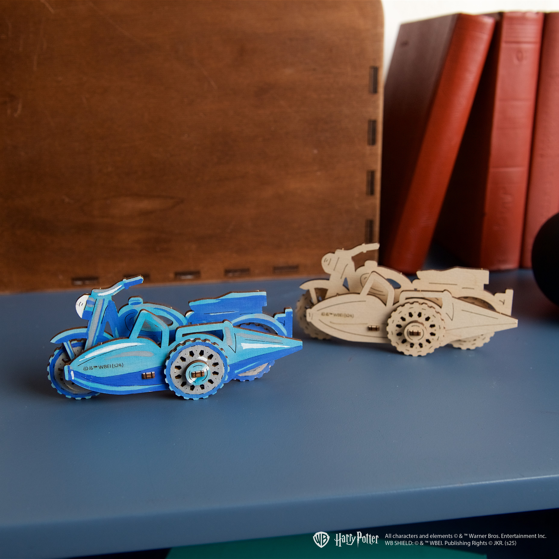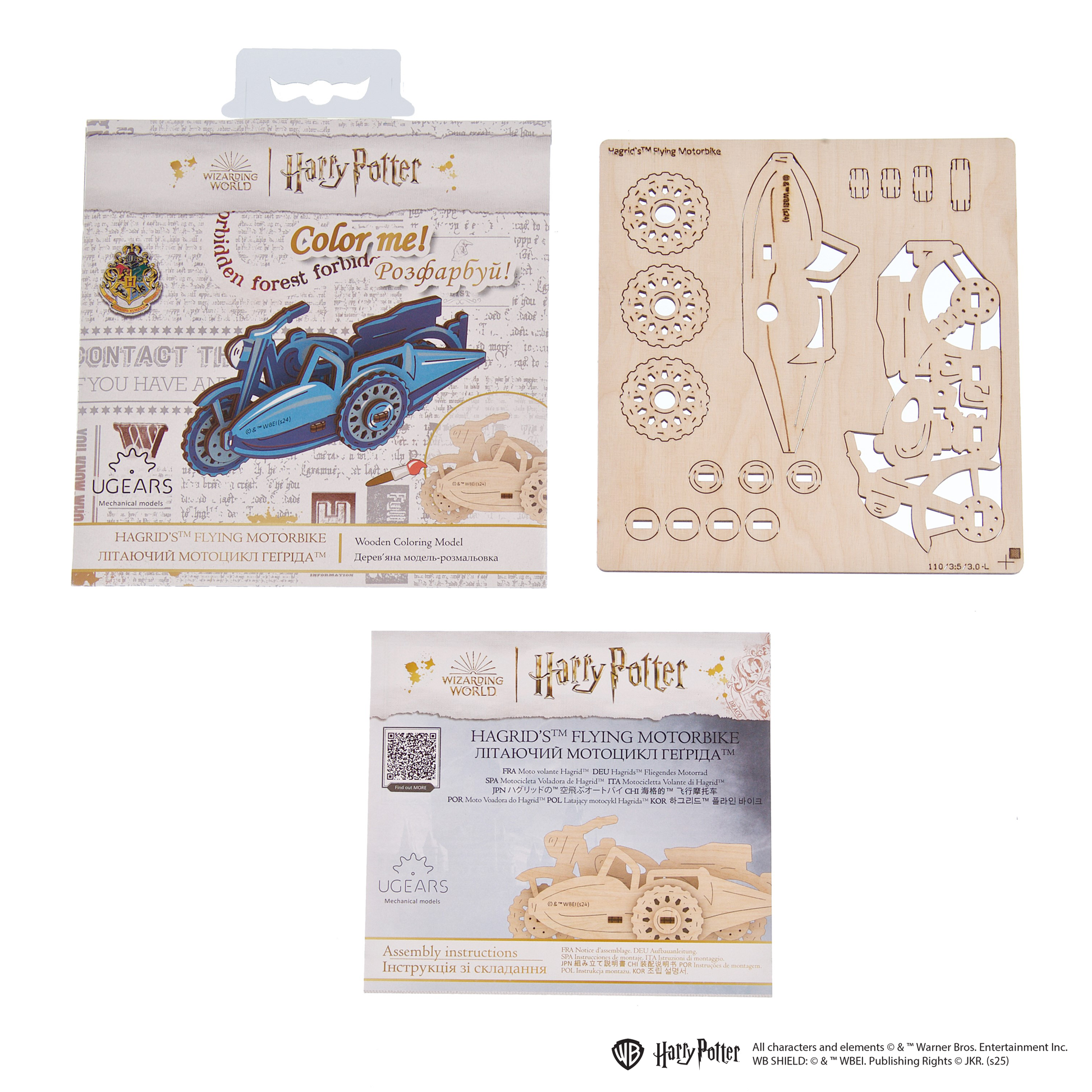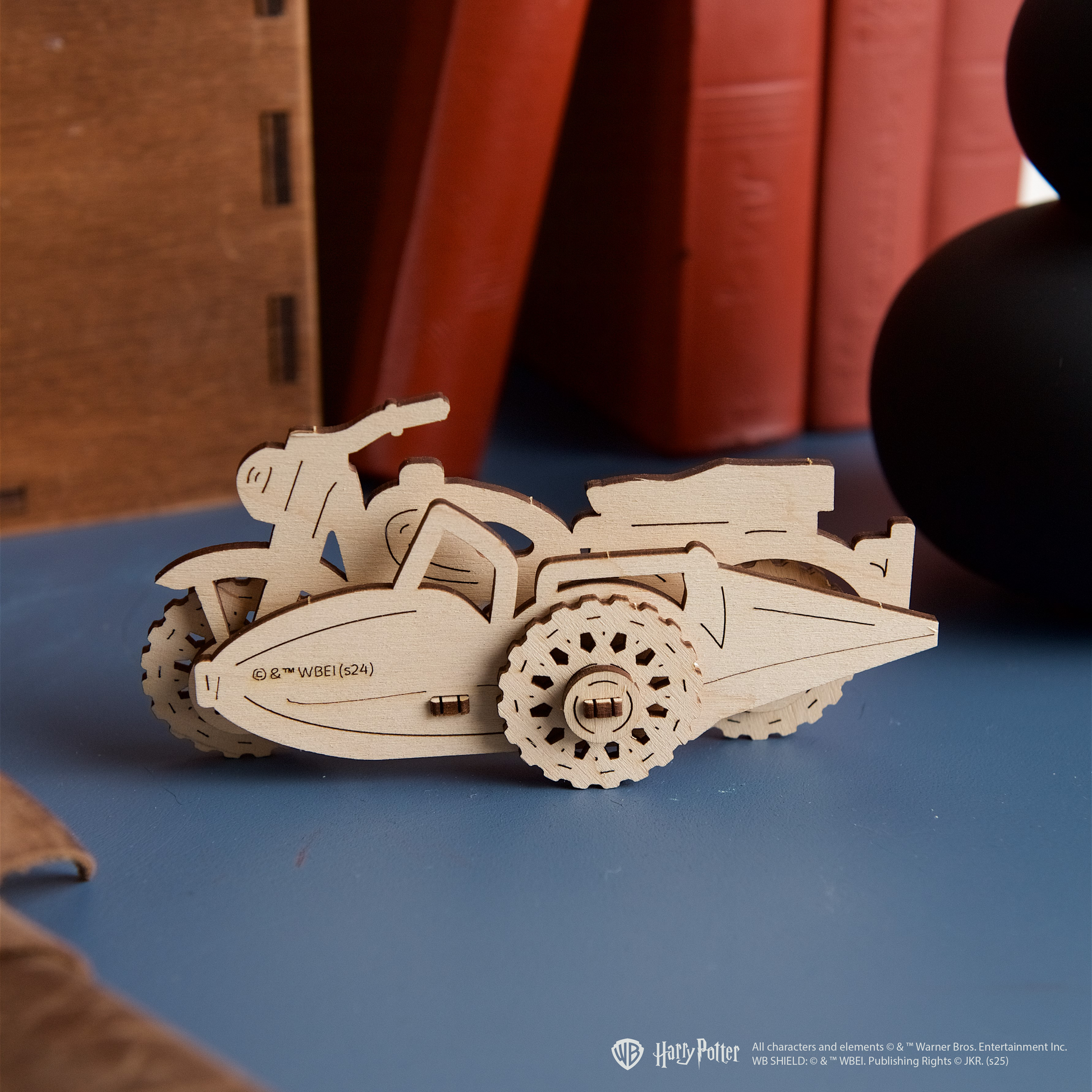 DIY Coloring model by Ugears – Hagrid's™ Flying Motorbike from the Harry Potter™ series. A simple 3D puzzle for children and adults. Moving wheels. Assemble without glue.