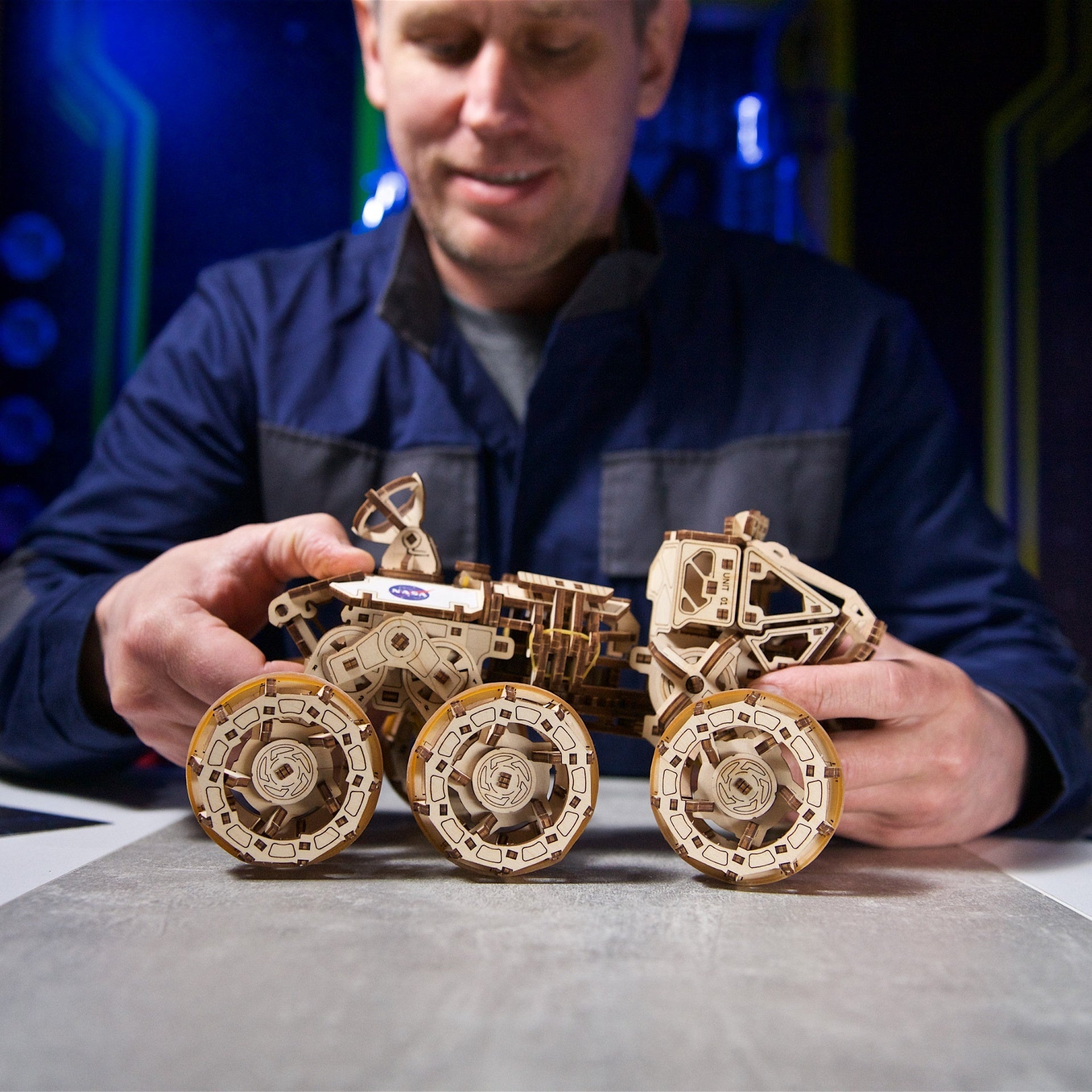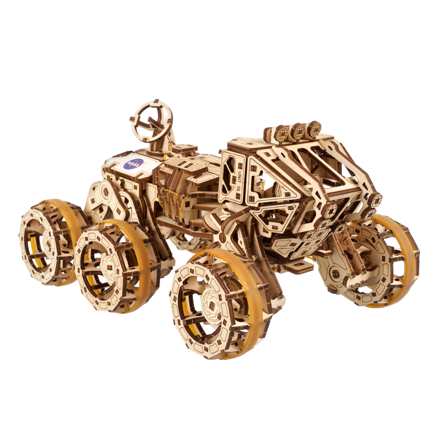 3D puzzle Ugears Manned Mars Rover. Fully-independent suspension and six-wheel drive lets you overcomes obstacles. Inspired by NASA Mars Exploration Program. No glue needed.