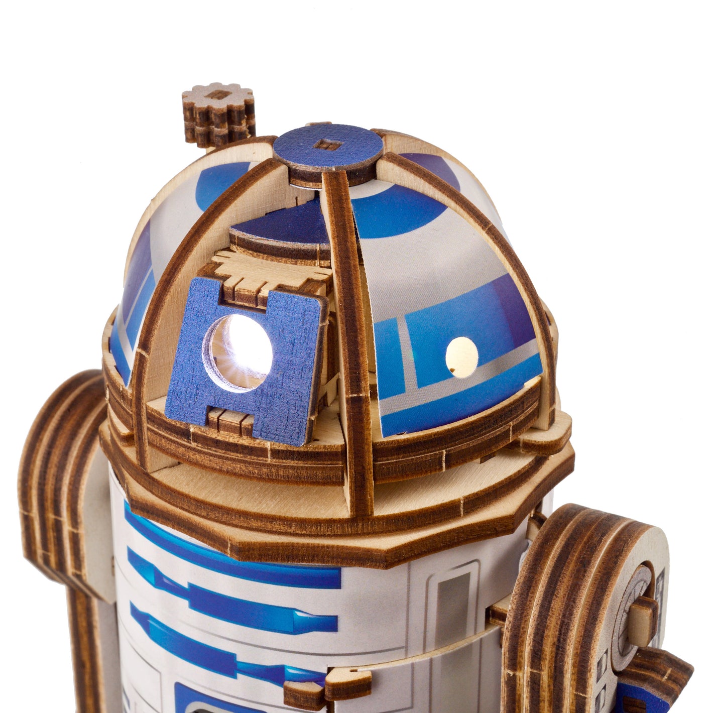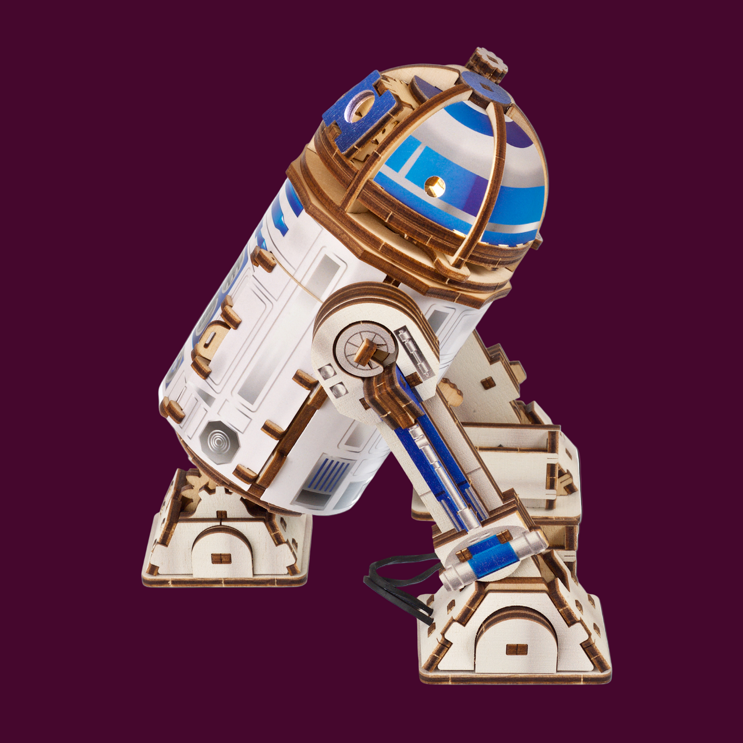 Our tribute to one of the saga’s most beloved characters. The model rolls forward using a wind-up metal spring and includes a functioning slide projector powered by a small light source (batteries not included). You can choose between multiple slide inserts and store them in a built-in hidden organizer inside the model. Also includes a precision tweezers tool for easy slide management.