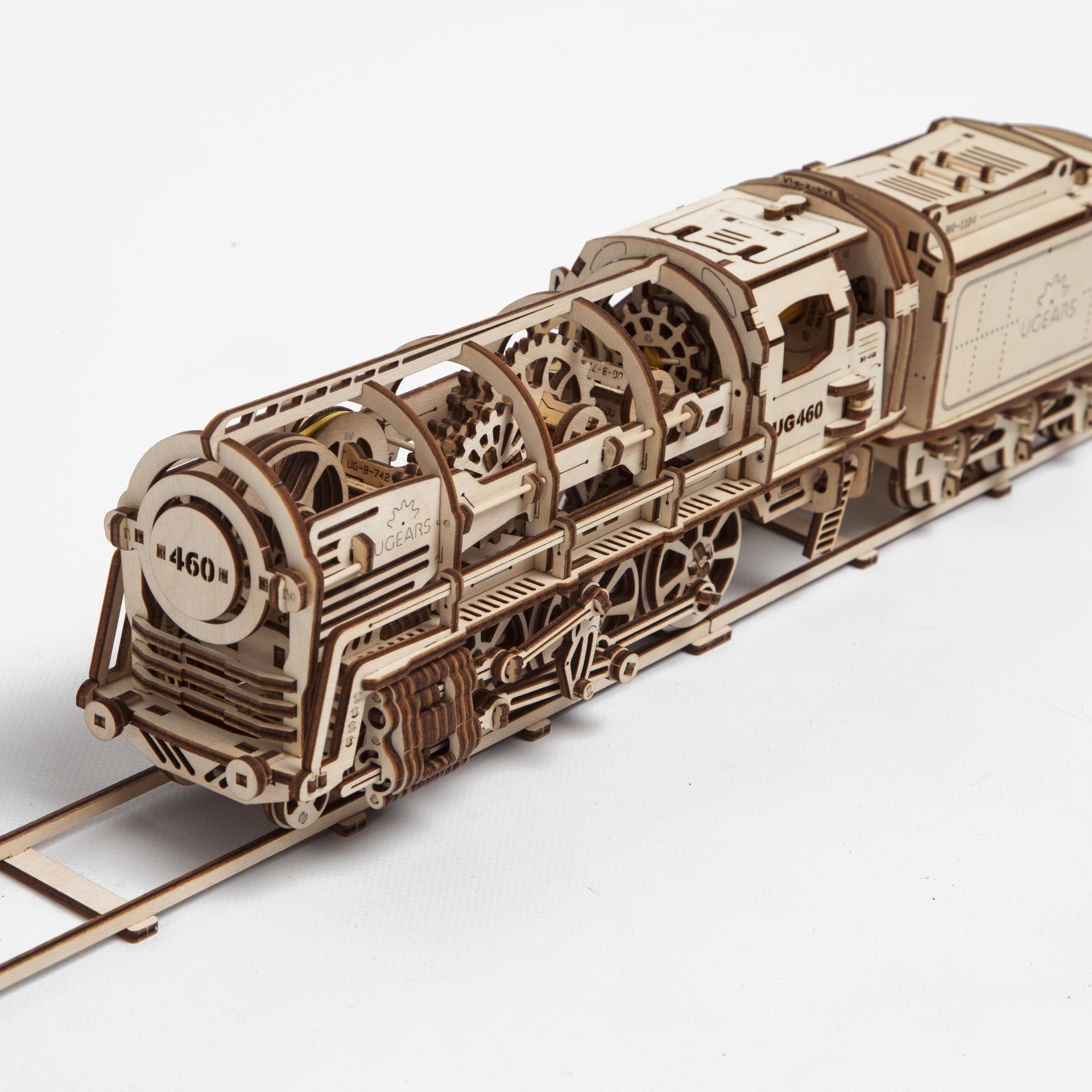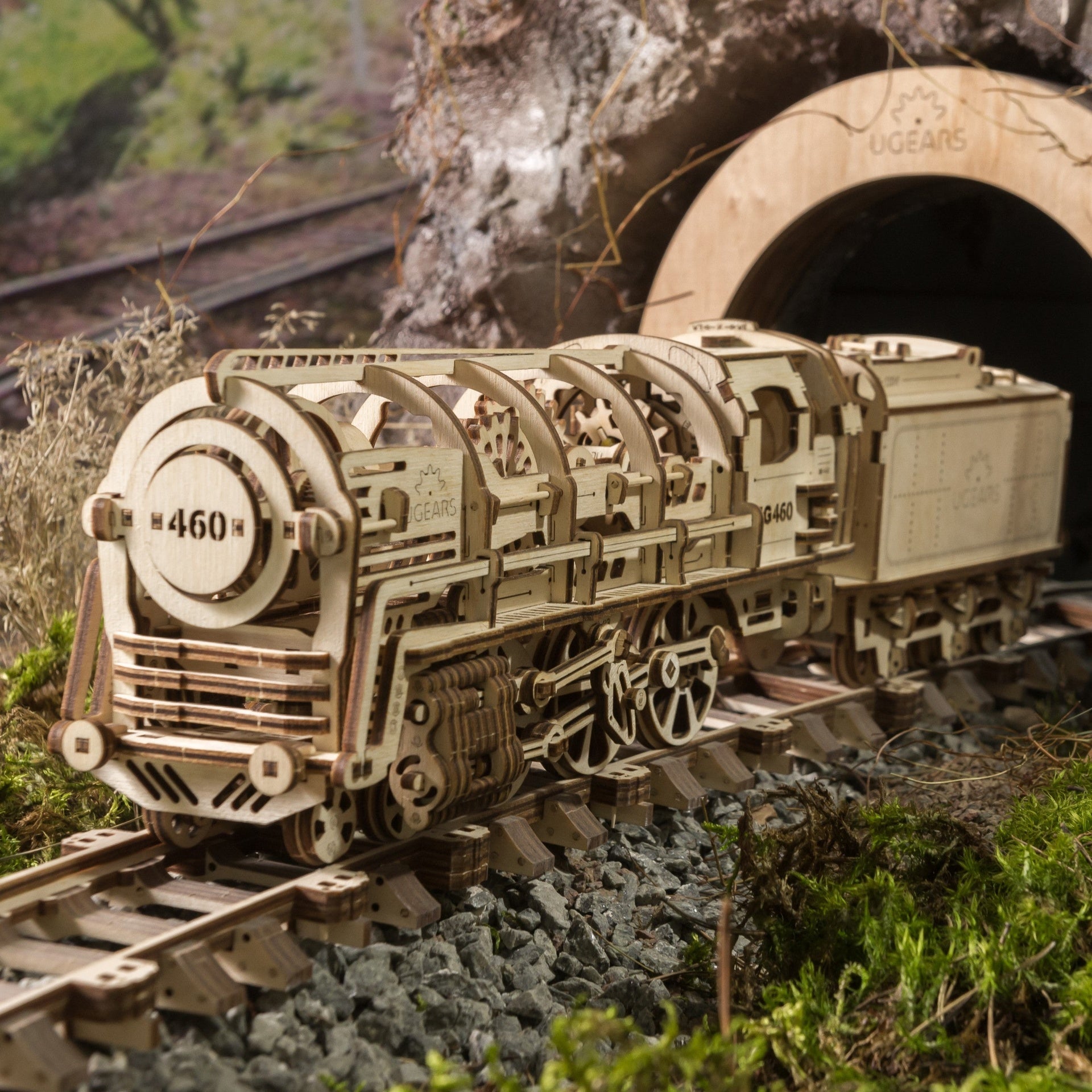 Die UGEARS-Lokomotive mit Schlepptender ist ein mechanisches Meisterwerk, das an die Dampfrösser des 19. Jahrhunderts erinnert.