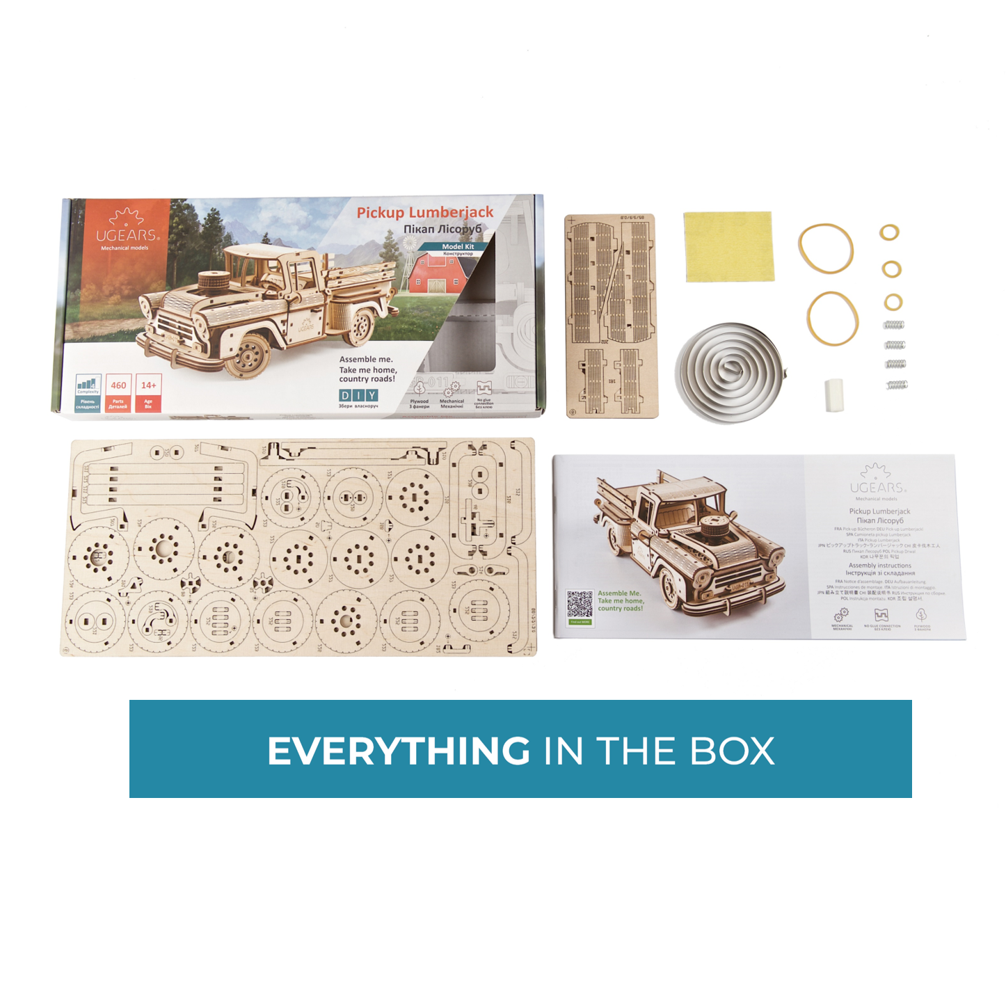 Mit den mechanischen Modellen und 3D-Puzzles von Ugears hört der Spaß nicht nach dem Bauen auf. Ihr Pickup mit den faszinierenden Details, den beweglichen Teilen und dem Federmotor ist zum Spielen und Genießen gedacht, nicht nur zum Ansehen. Das Pick-up Lumberjack Modell aus Holz kann sofort nach dem Auspacken zusammengebaut werden - ohne Spezialwerkzeug oder Kleber. Folgen Sie einfach den detaillierten, bebilderten Anleitungen in 11 Sprachen (Englisch, Deutsch, Ukrainisch, Französisch, Polnisch, Spanisch, Russisch, Japanisch, Italienisch, Chinesisch und Koreanisch), um ihn aufzubauen. Wenn beim Zusammenbauen ein Teil kaputt geht, schicken Sie uns eine E-Mail an customerservice@ugearsmodels.com und wir schicken Ihnen gerne und ohne zusätzliche Kosten Ersatzteile zu. Sie haben eine Frage, oder etwas stimmt nicht mit Ihrem Modell? Auf der Facebook-Seite des Ugears-Fanclubs finden Sie hilfreiche Tipps und Anregungen von unserer internationalen Ugears-Familie, oder Sie senden uns einfach eine E-Mail mit Ihrer Frage. Wir sind stolz darauf, für unseren hervorragenden Kundenservice bekannt zu sein.