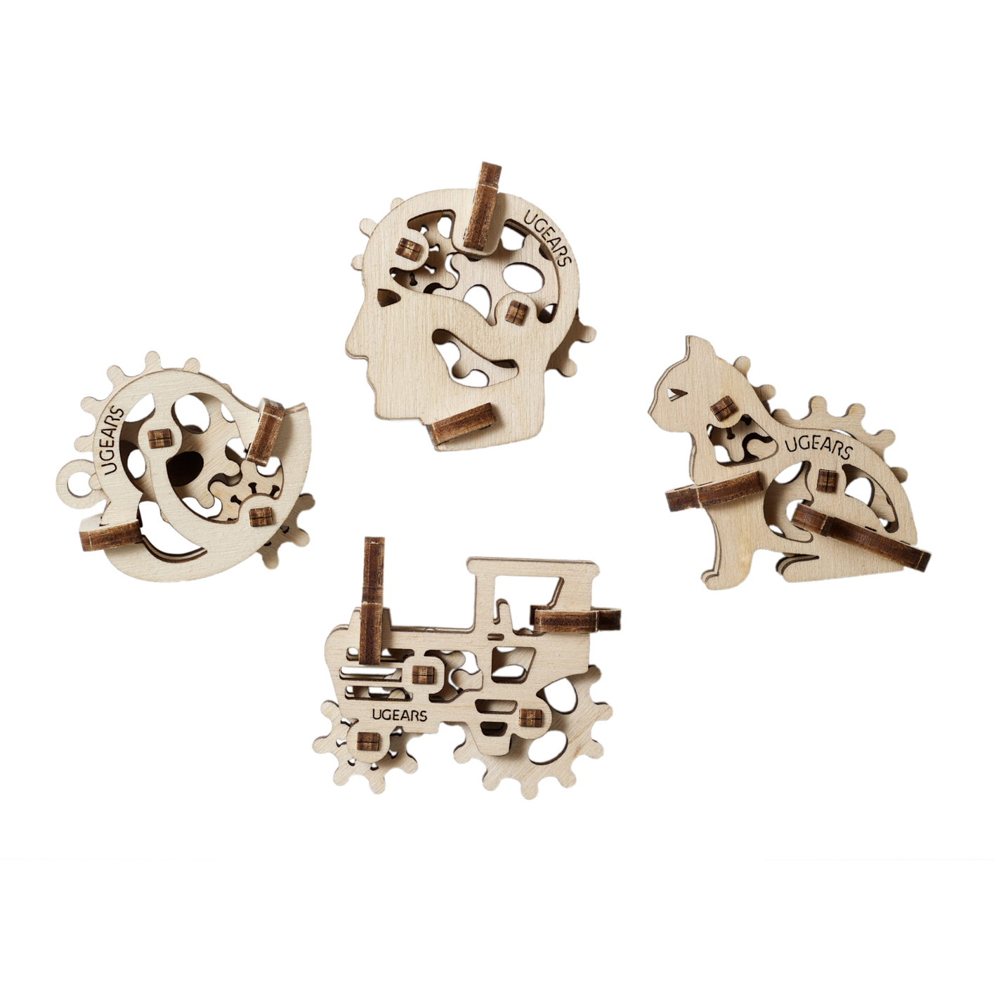 Ugears Fidgets-Tribiks Set aus Holz: Traktor, Katze, Kopf, Herz