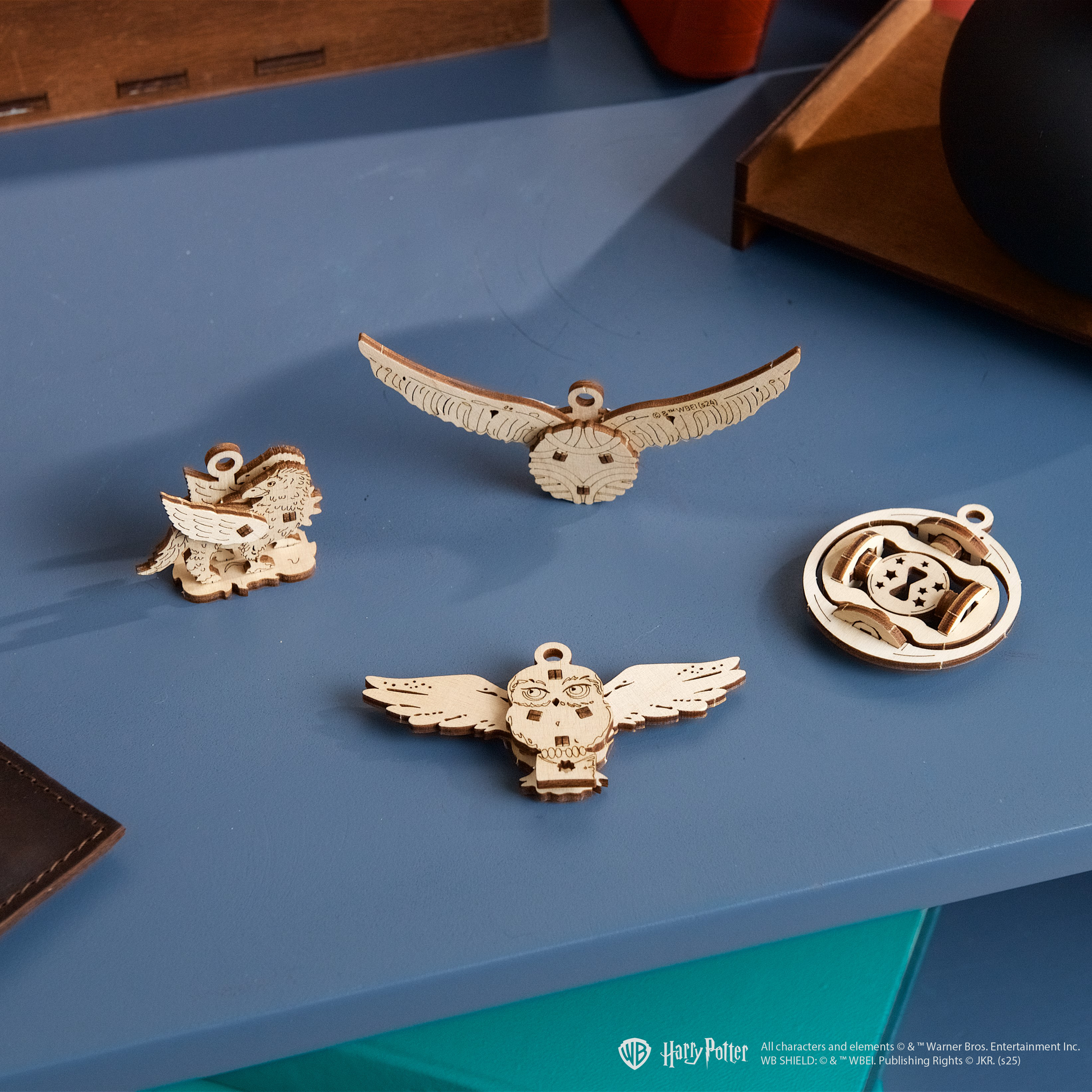 Neue 3D-Fidgets Magische Kreaturen und Gegenstände der Ugears Harry Potter™-Serie: Hedwig™, Hippogreif Seidenschnabel™, Snitch™ und Zeitumkehrer™ mit beweglichen Teilen. Kein Klebstoff