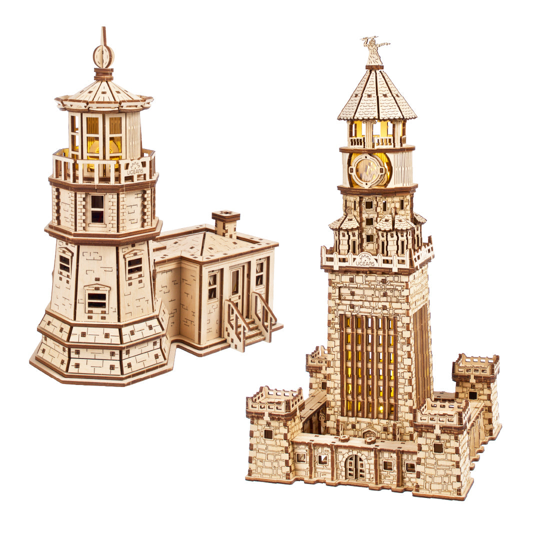 Leuchtturm von Alexandria, das erste Ugears-Modell mit elektrischen Komponenten. Ein spannendes Holzpuzzle und ein gemütliches Nachtlicht mit LED-Beleuchtung. Das perfekte Geschenk