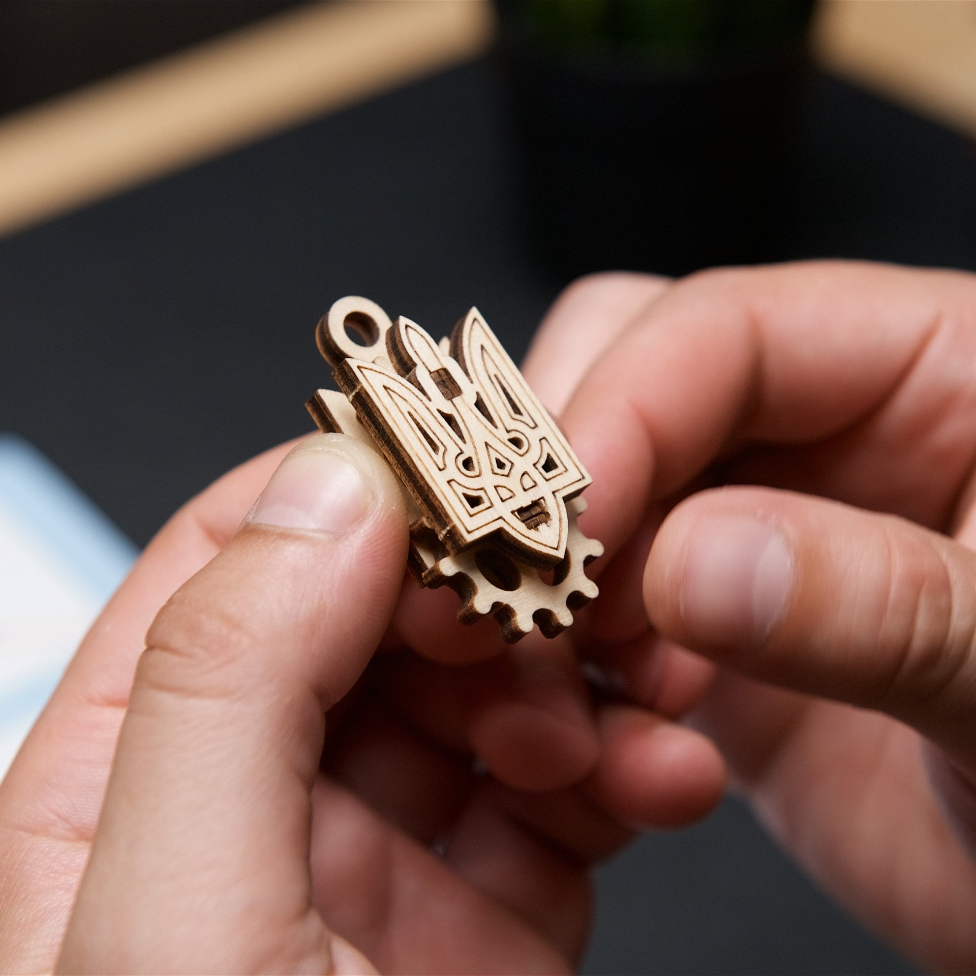 El kit de montaje Valiente Tractor UA comprende (como todos los kits de la serie Era del Coraje) un bonito extra: un Fidget de Tridente. Este mini-modelo de Ugears es un recuerdo original con su propia acción mecánica y un ojete para colgarlo o utilizarlo como elegante llavero patriótico. El Tridente es el escudo de armas de Ucrania, un símbolo de su fuerza, libertad y espíritu indómito.