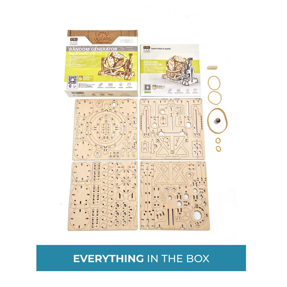 Maqueta mecánica educativa Generador Aleatorio de la serie STEM Lab de Ugears. Puzzle 3D de madera. Descúbralo en realidad aumentada.