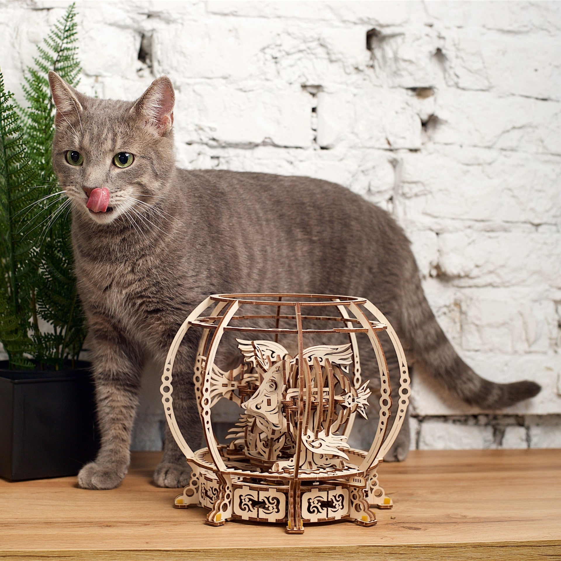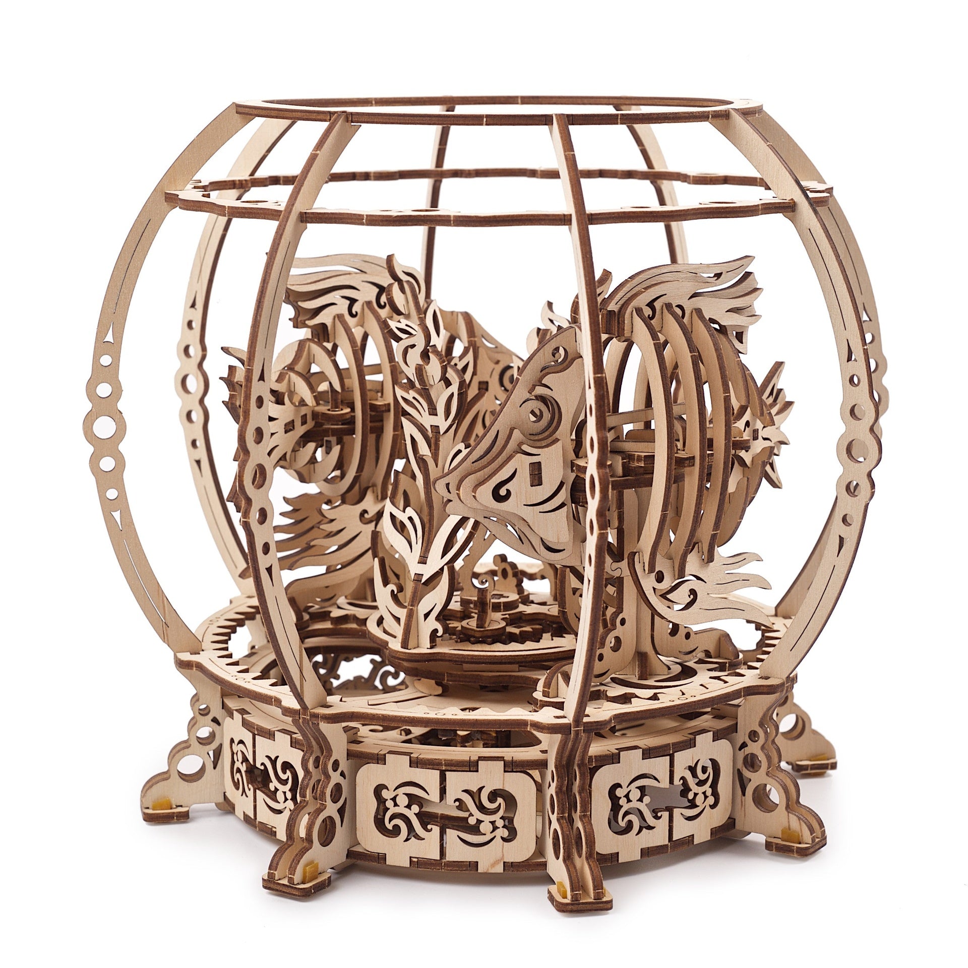 El Acuario Mecánico de Ugears, puzzle 3D de madera. Maqueta para montar. Sin pegamento. Los peces nadan sin pilas. Perfecta idea de regalo para todas las edades