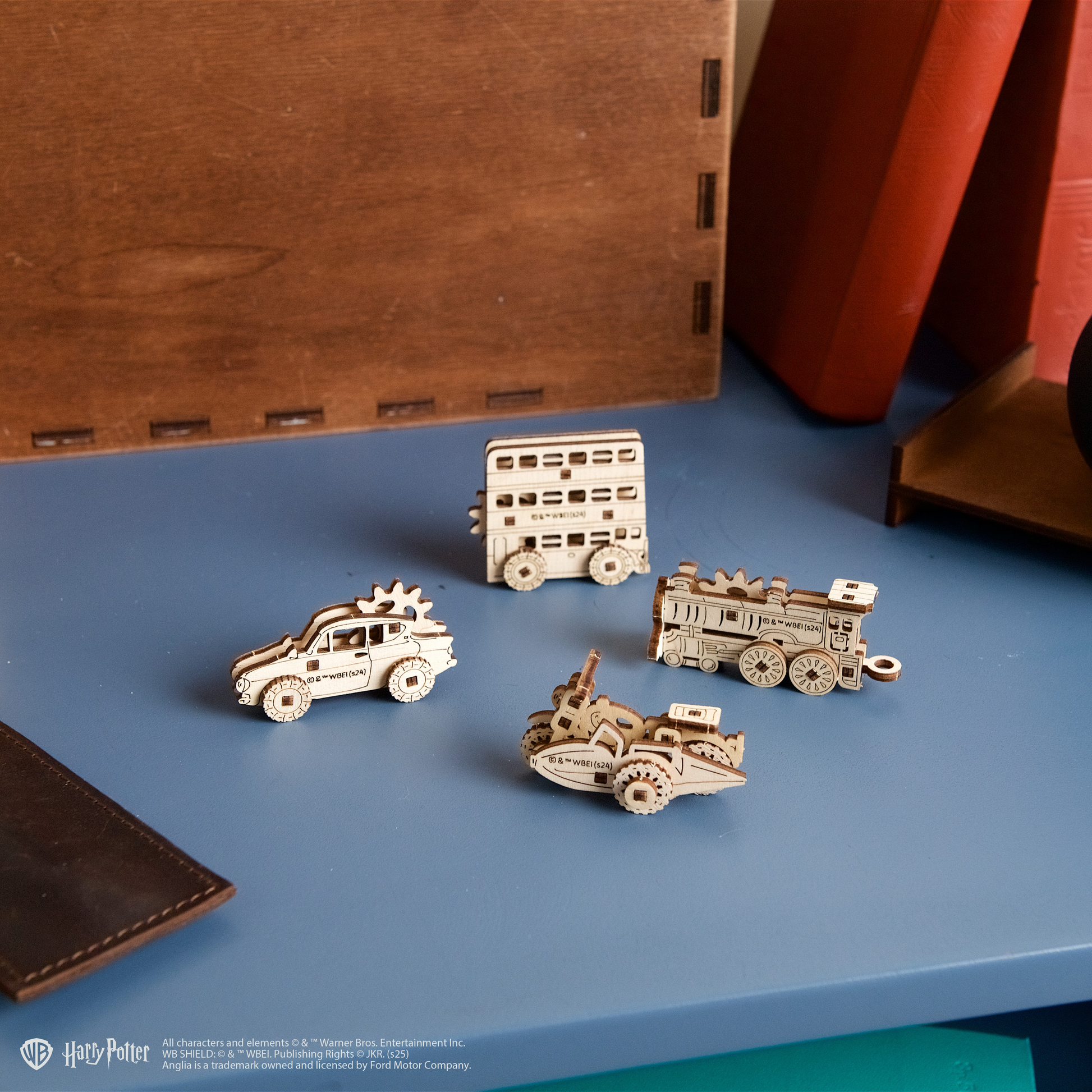 Nuevos Fidgets 3D Vehículos Mágicos™ de la Ugears serie Harry Potter™: Expreso de Hogwarts™, Ford Anglia™, Autobús Noctámbulo™, Moto de Hagrid™ con elementos móviles. Sin pegamento