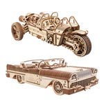 Cabriolet de ensueño Ugears: maqueta mecánica de madera. Ensamble el descapotable con su motor V8 y sistema de transmisión con marchas al ralentí, adelante y atrás para conseguir un cabriolet autopropulsado.