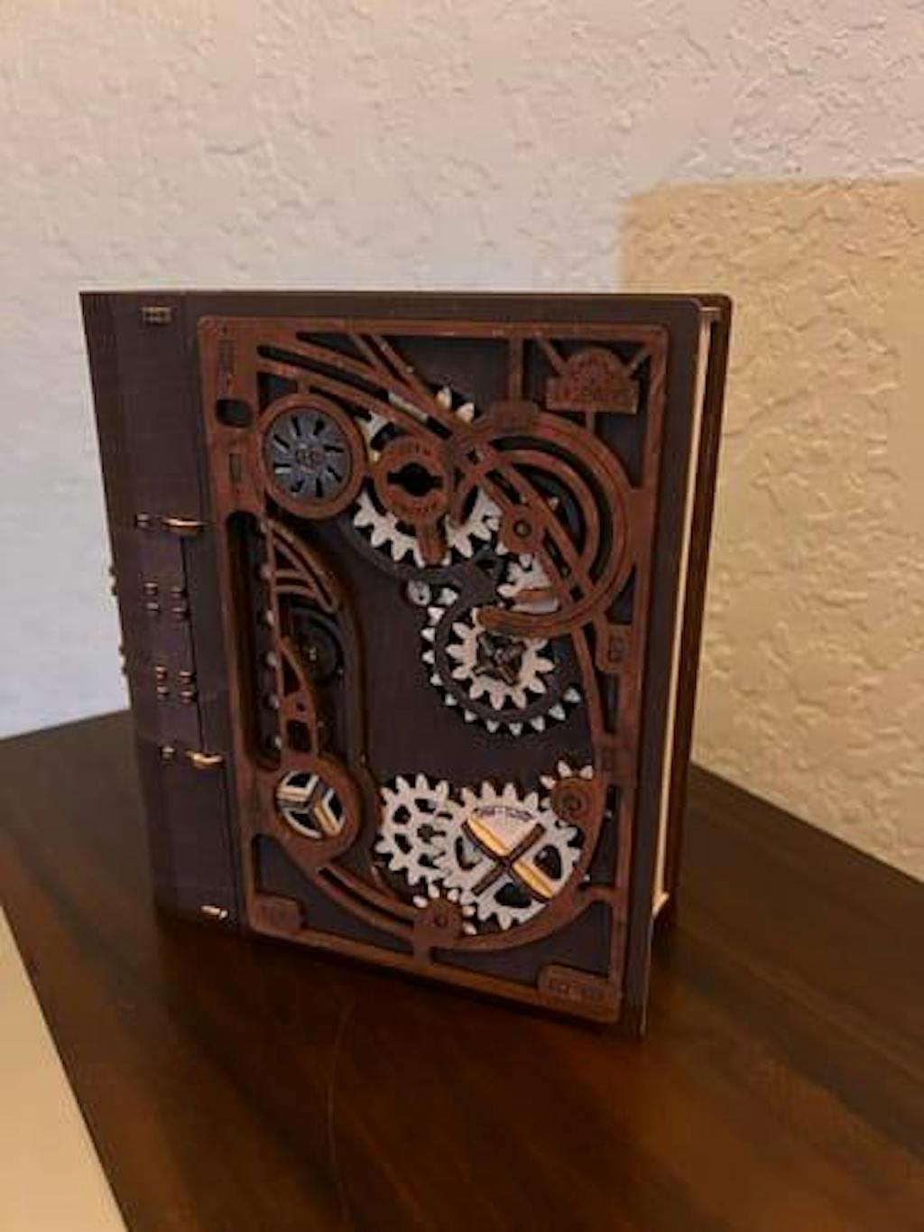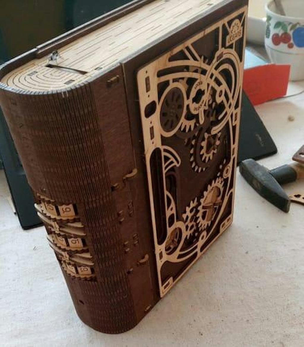 Ugears dispone de una completa colección de maravillosas cajas rompecabezas 3D para guardar y organizar sus cosas personales. El Cofrecito con Perlas de Ámbar tiene unas piedras naturales y semipreciosas en su tapa, el Cofrecito de Época se expande al abrirlo para dejar a la vista sus seis compartimentos (más dos pequeños compartimentos secretos), y el Cofre Joyero tiene una llave escondida en la tapa y un ojo de cerradura oculto en el lateral. La maqueta Caja Fuerte de Ugears se abre y se cierra con una combinación de tres dígitos de su elección, al igual que el Libro de Secretos. Elija la cajita rompecabezas que mejor se adapte a su personalidad, o móntelas todas para sorprender a sus amigos/as y seres queridos con estos extraordinarios regalos. ¡Acérquese a este extraño mundo del misterio mecánico Steampunk con el Libro de Secretos de Ugears!