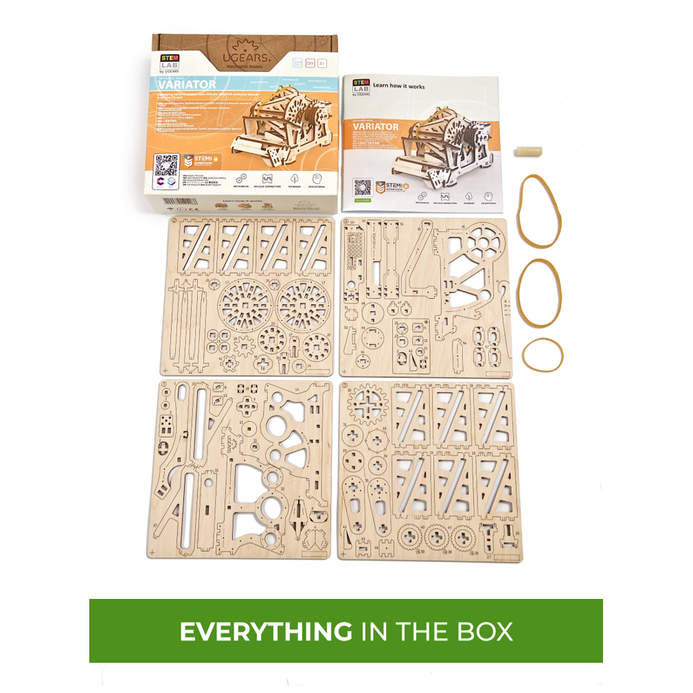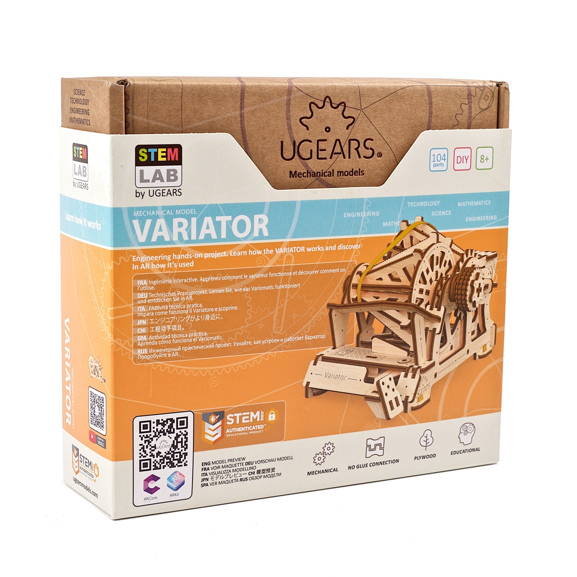 Kit de modélisme mécanique éducatif Variateur de la série Ugears STEM Lab. Puzzle 3D en bois. Découvrez-le en réalité augmentée.