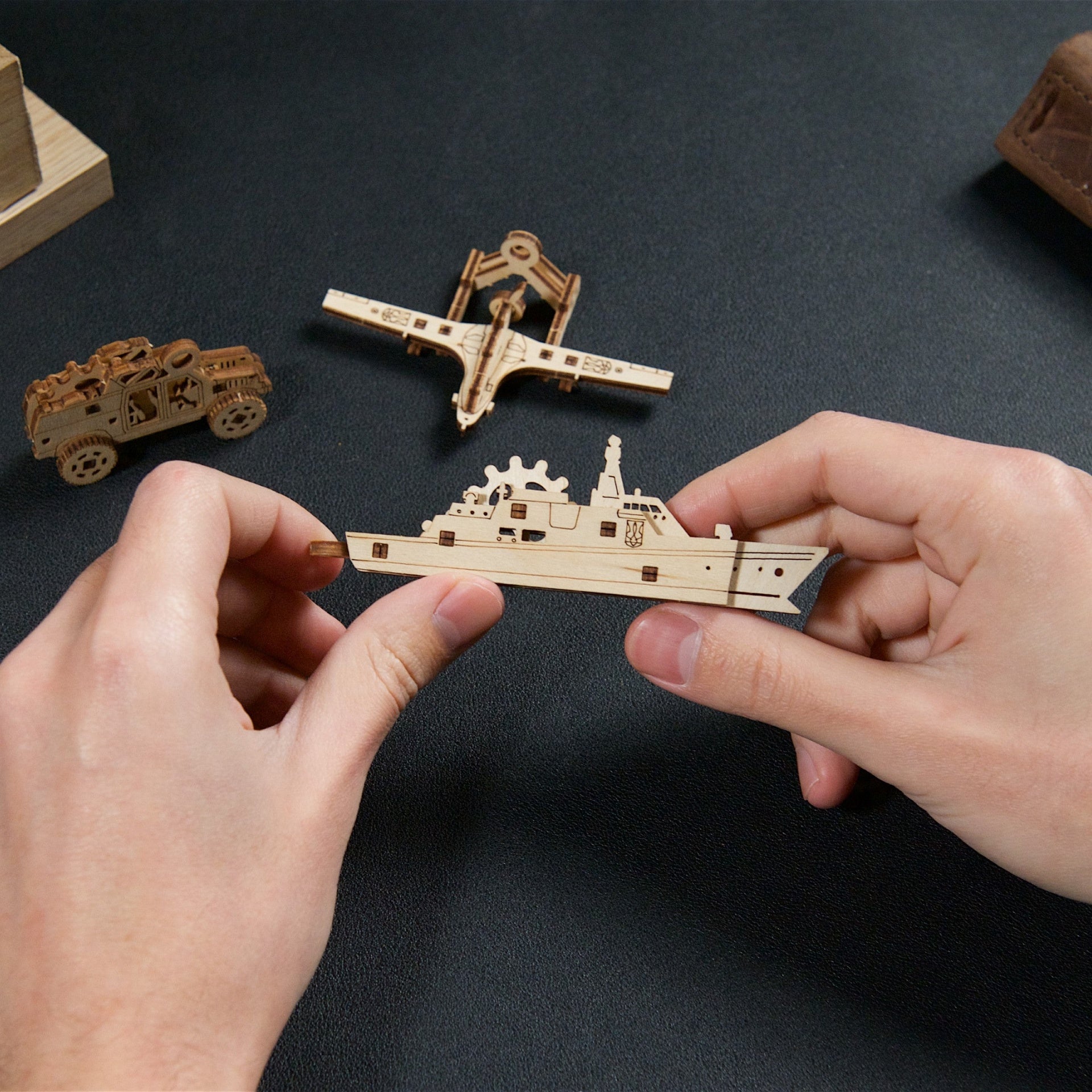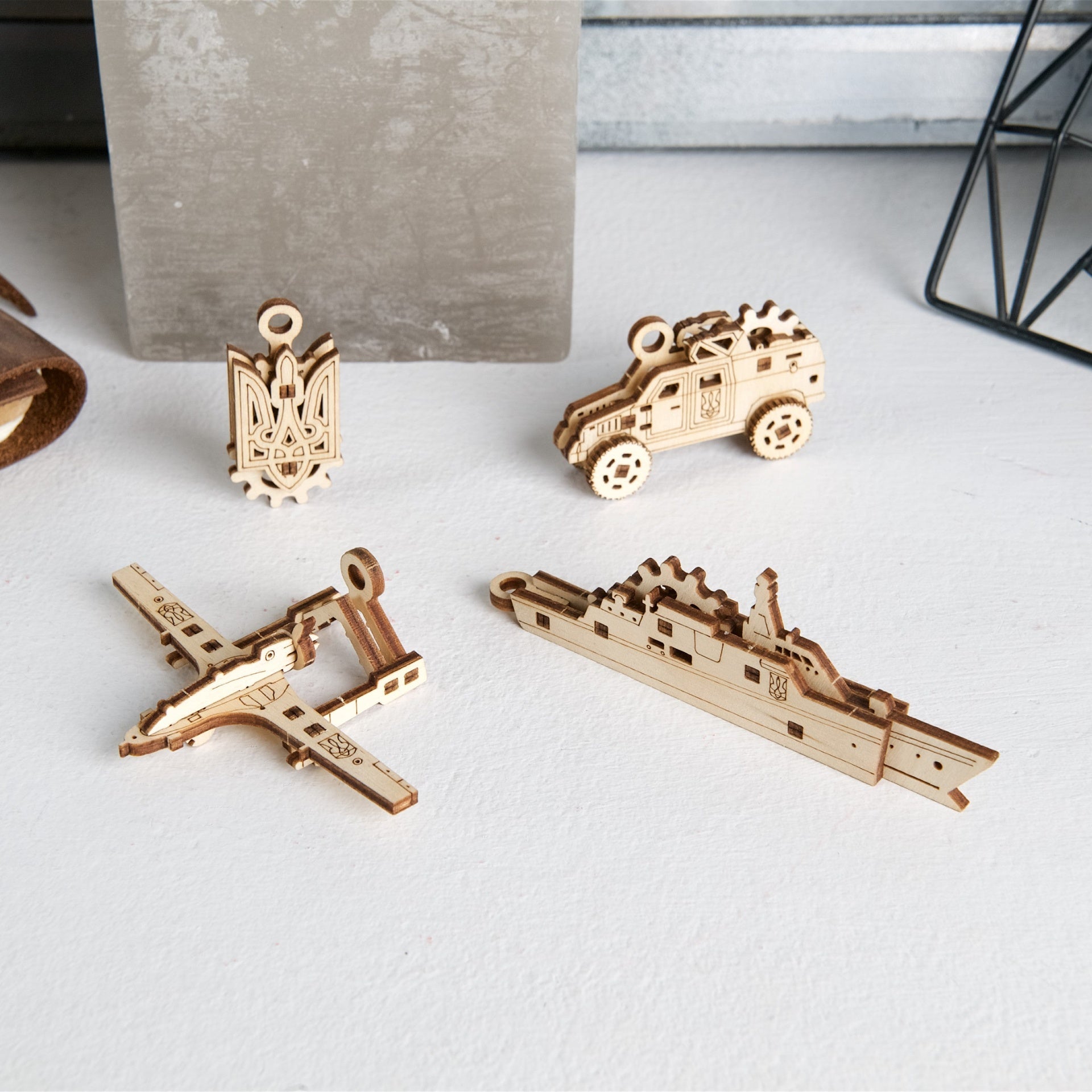 La série de U-Fidgets de Ugears célèbre certains des héros qui défendent bravement l’Ukraine contre l’envahisseur. Le lot est composé de quatre petites figurines en bois à monter soi-même, chacune composée d’éléments mécaniques simples :