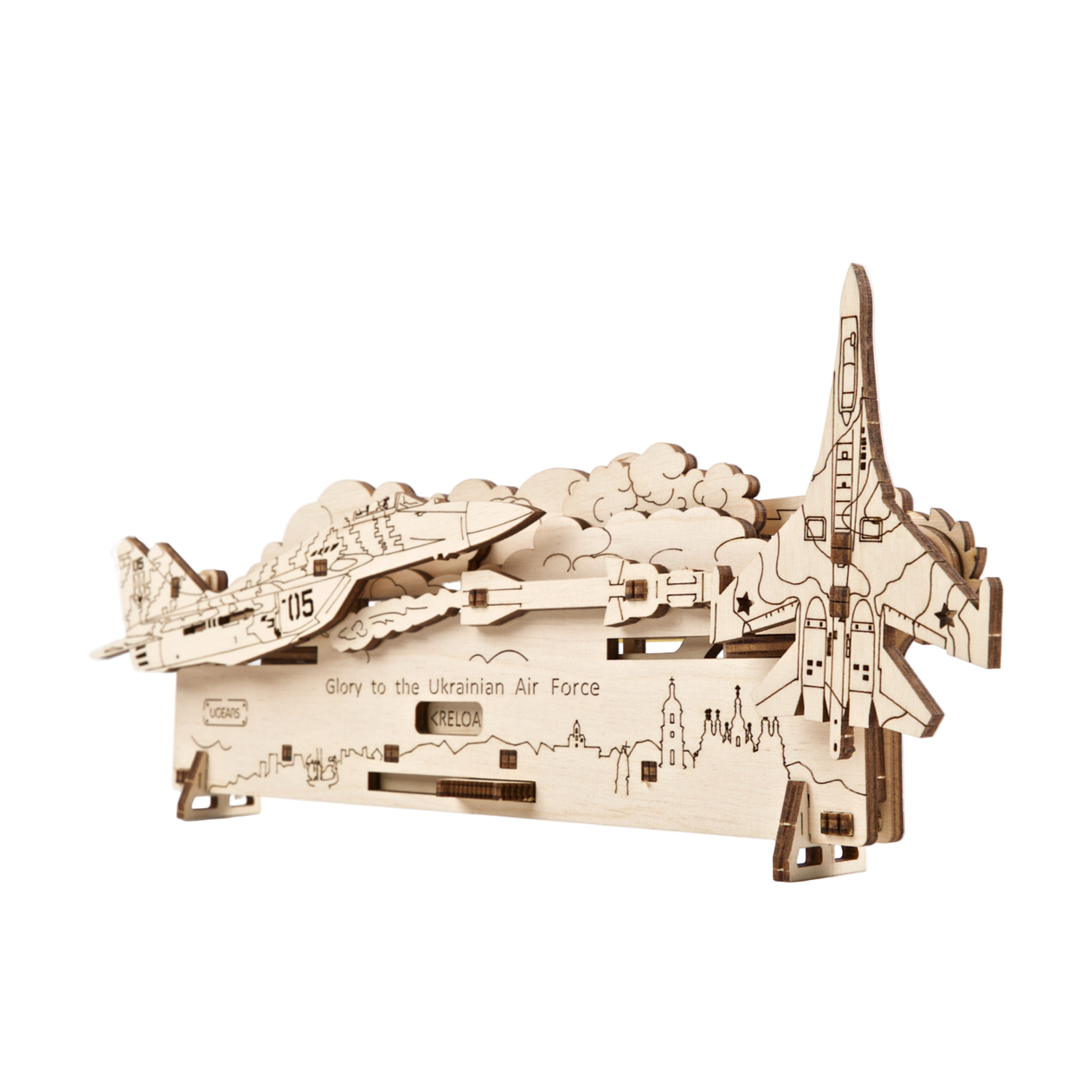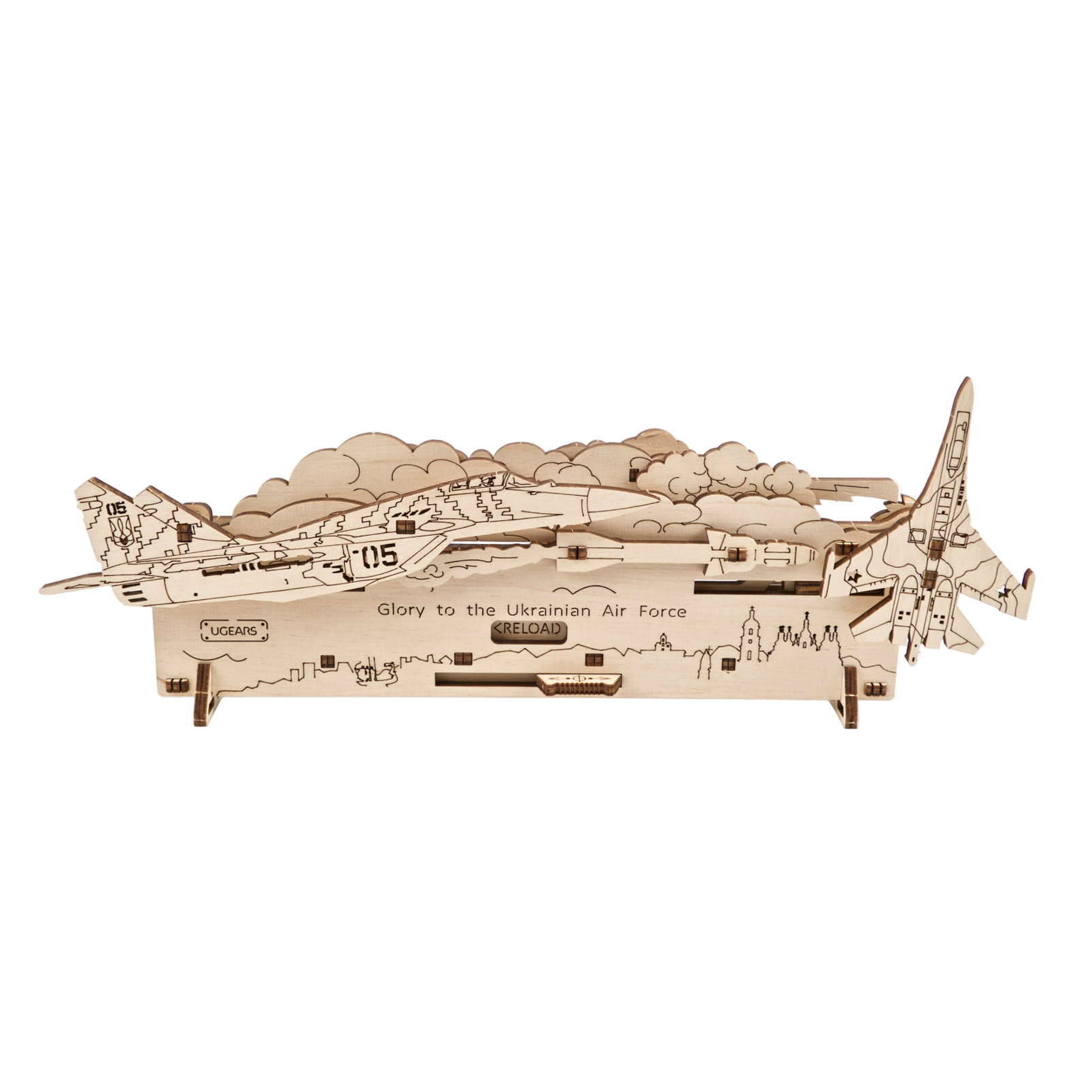 Ugears présente Le fantôme des attaques de Kiev, une autre mini-maquette mécanique de la collection spéciale exclusive Âge de la bravoure. Nous avons conçu cette collection pour rendre hommage à la nation ukrainienne et aux défenseurs ukrainiens à travers l'histoire, y compris ceux qui se battent en ce moment pour la liberté de notre pays. Nous appelons les modèles de la série Âge de la bravoure des « histoires mécaniques » car ils représentent des événements réels de la guerre actuelle.