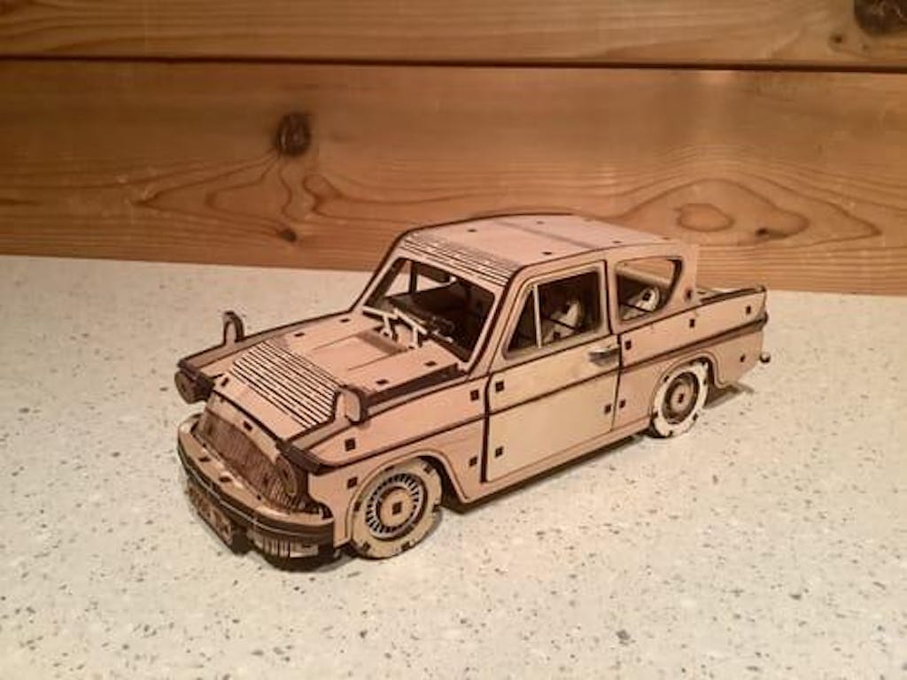 Ugears a le plaisir de présenter un modèle automobile unique aux fans d'Harry Potter : la Voiture volante Ford Anglia, une voiture qui n'en fait qu'à sa tête. L'Anglia est une reproduction fidèle de la voiture moldue enchantée des Weasley. Qui peut oublier la scène de « Harry Potter et la Chambre des Secrets » où Harry et Ron retournent à Poudlard à bord de l'Anglia, perdent le contrôle et s'écrasent dans le Saule Cogneur ? Après l'avoir échappé belle, les jeunes sorciers et tous leurs biens sont éjectés par la voiture, contrariée par les mauvais traitements qu'elle a subis.