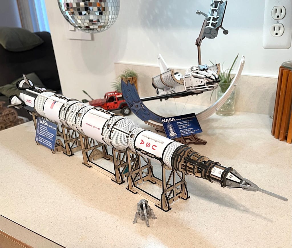 Ugears wooden 3D puzzles. New 3-in-1 Space Set: NASA Saturn V Rocket, Lunar Rover, and Space Shuttle Discovery. A fun, educational, and inspiring gift for space lovers of all ages.