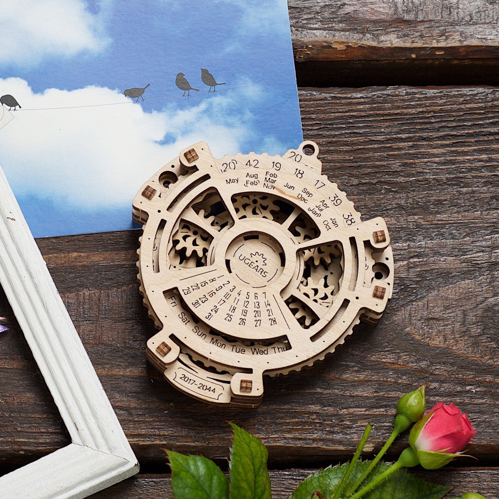 The Date Navigator 2.0 helps to identify the day of the week for any date from 2017 to 2044. It’s assembled without glue like all UGEARS models.
