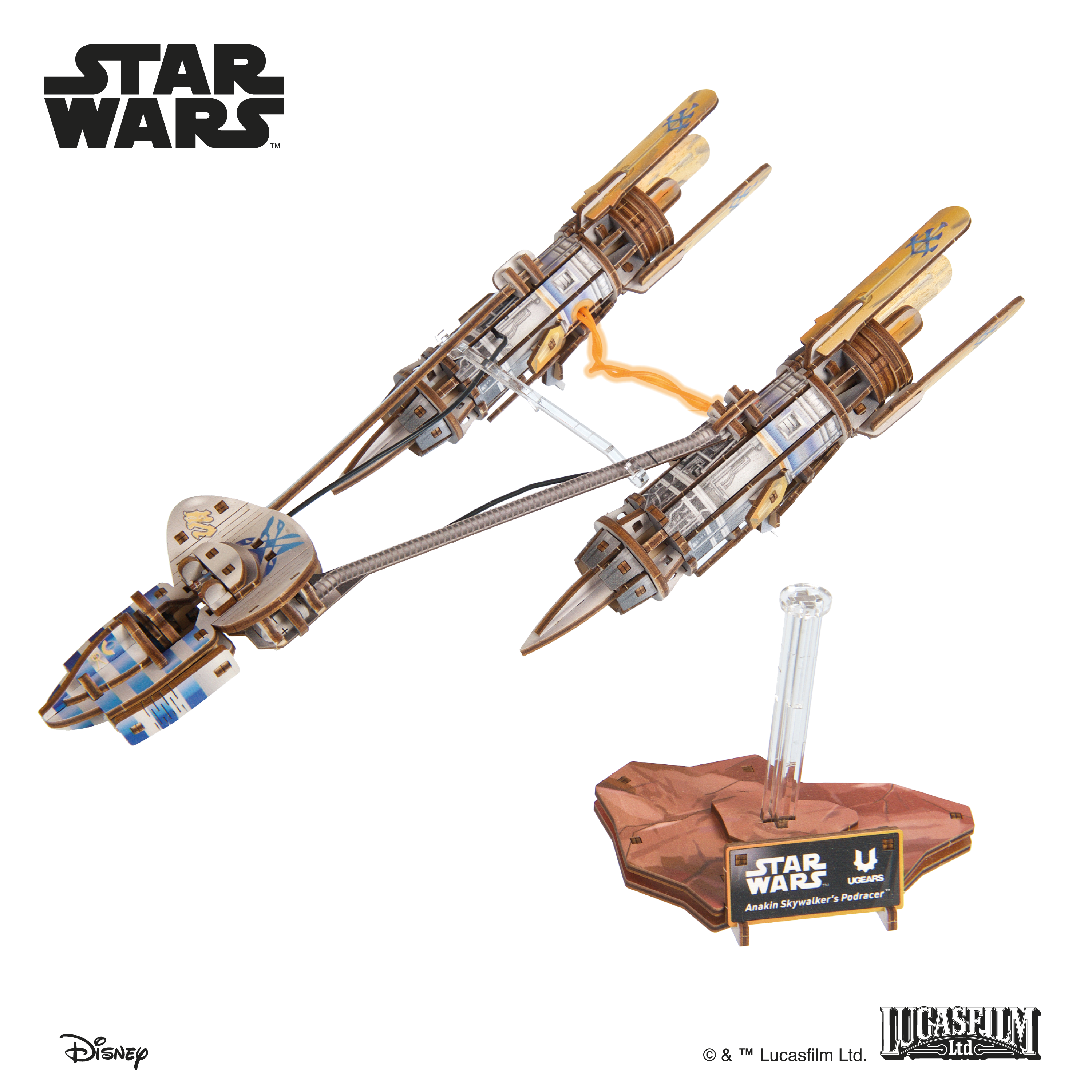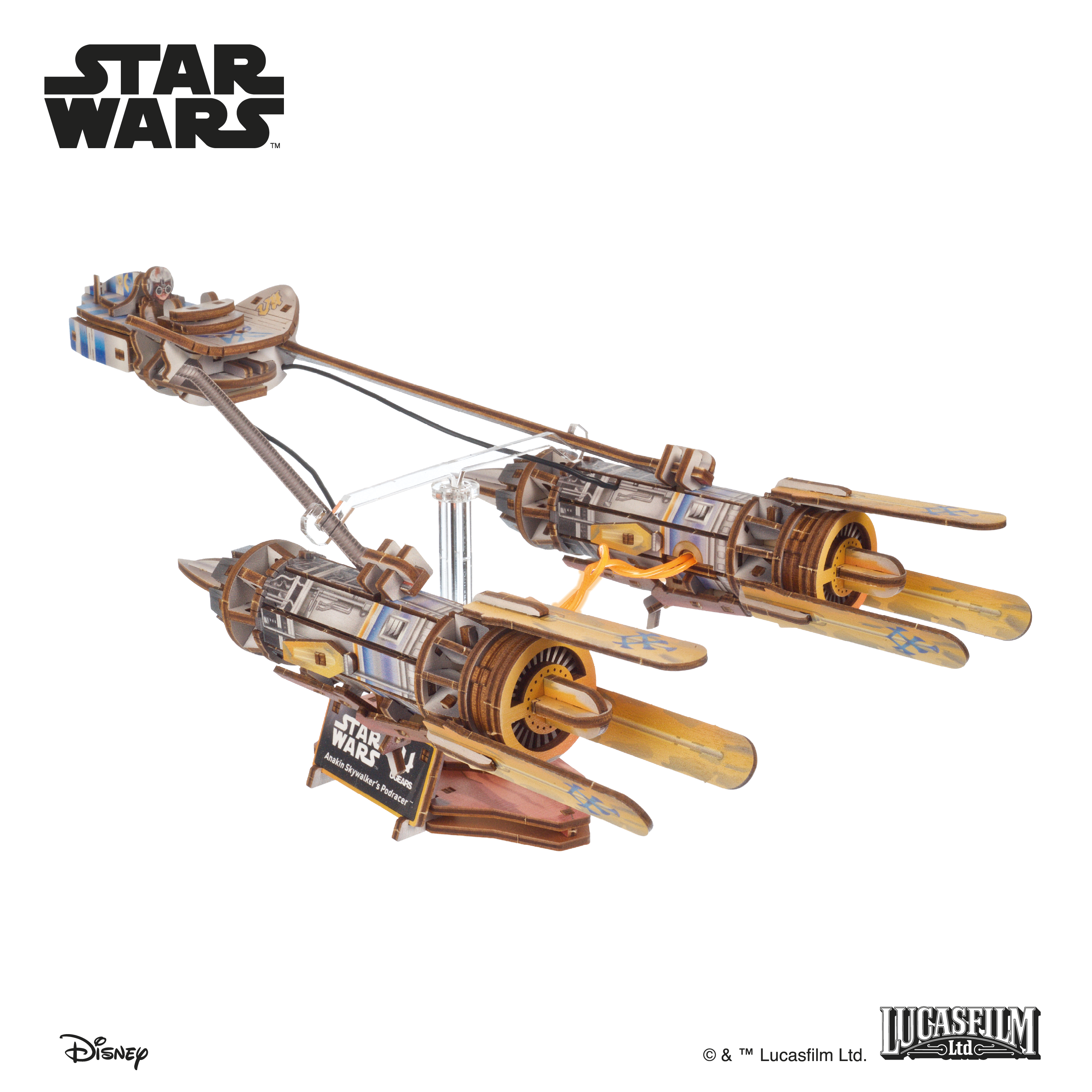 Build Anakin Skywalker’s Podracer™ — a 3D wooden model with swaying balance motion, glowing LED arc, and detailed twin engines straight.
