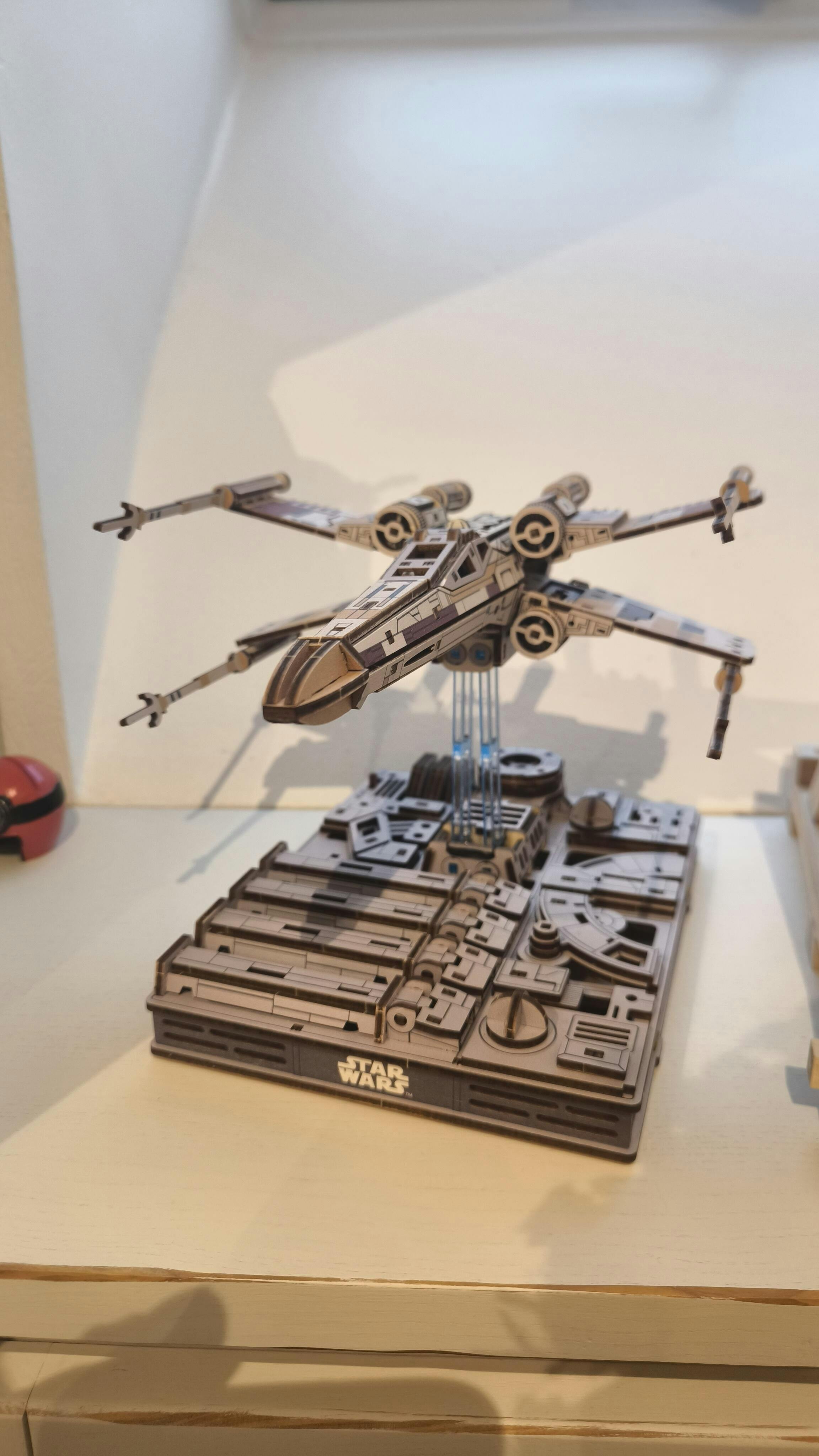 Build the legendary Luke Skywalker`s X-Wing Starfighter™ with this 3D wooden puzzle! Features S-foils that open into attack position, opening cockpit, R2-D2 button hatch, and a magnetic, motorized stand styled like the Death Star.