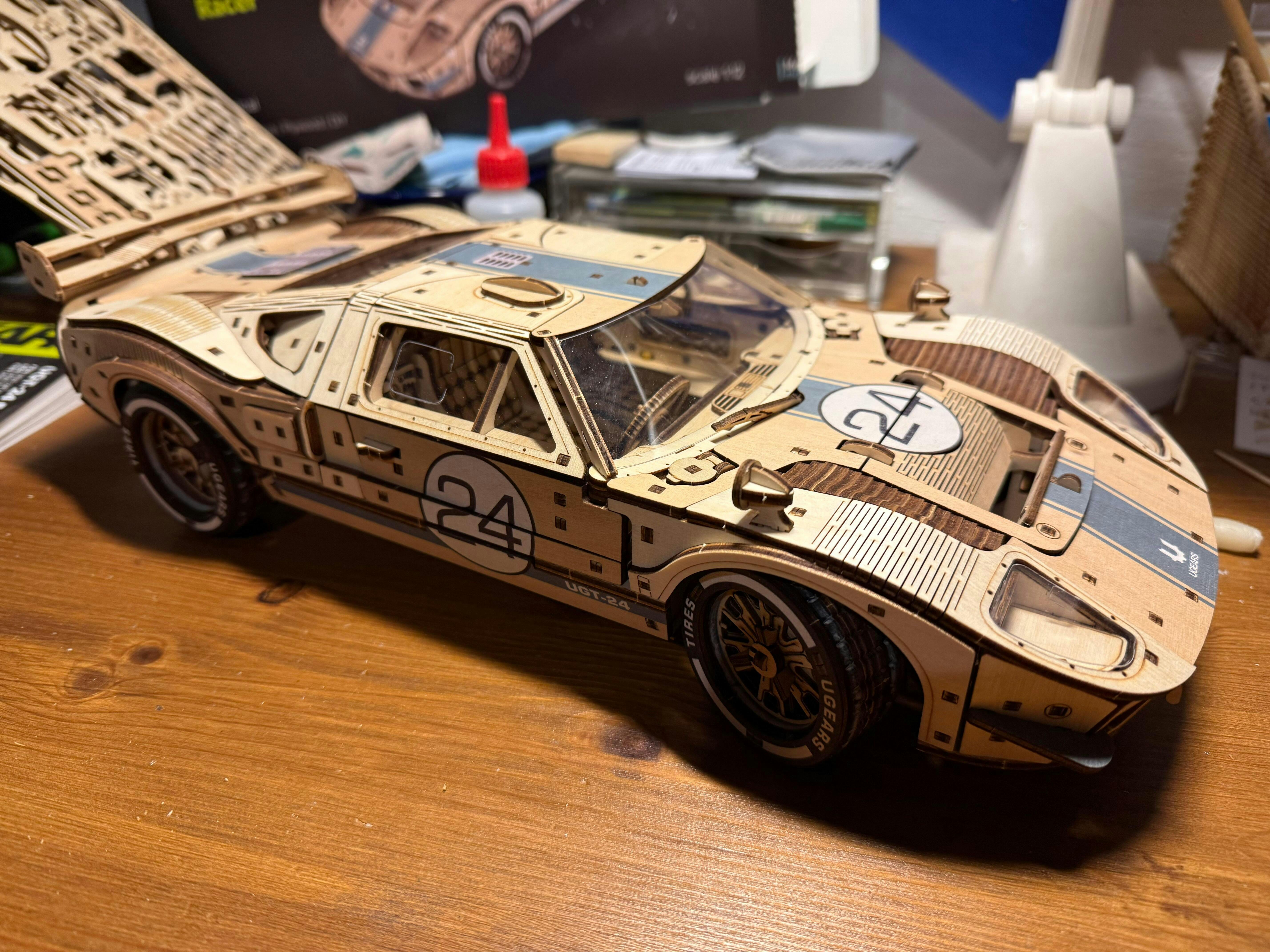 This model is fantastic. I've made loads of UGears kits and have used them in the classroom for hobby groups. I also like making them myself for pleasure. The older ones were held together with toothpicks and, not having made one for a while, I thought I'd re-introduce myself with a more advanced assembly and was pleased to discover this is all click together parts. UGears are super accurate and if you carefully follow the instructions are straightforward and entertaining. Lots of concentration needed but it all fits together perfectly. Obviously UGears are getting better over time and this Endurance Racer is complex and detailed reminding me of a wooden version of a well known maker of plastic kits from Denmark! In some ways I found this more satisfying and the overall look of the finished kit is genuinely stunning. I think UGears should build on the success of this kit and make a range of similar sports supercars and vehicles. Well done and support for Ukraine!